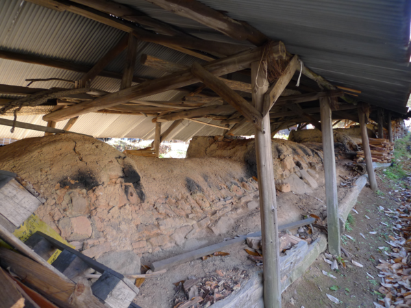 横に長く連なった土で出来ている登窯の写真 拡大画像 (PNG: 508.5KB)