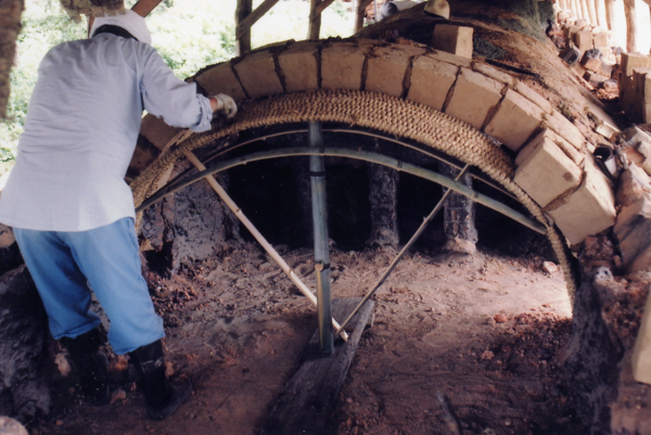 男性が登窯で作業している写真 拡大画像 (PNG: 475.2KB)