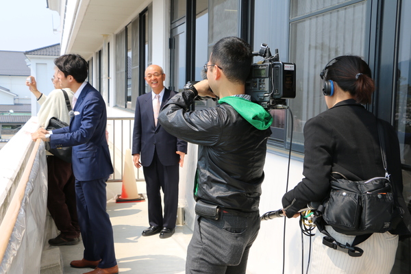 市長室のベランダで女性の方がインタビューを受けている写真 拡大画像 (JPEG: 112.7KB)