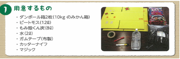 ダンボールコンポストの材料の写真と、用意するものの説明の画像 拡大画像 (PNG: 125.5KB)