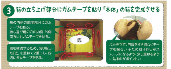 箱の立ち上げ部分にガムテープを貼り、本体の箱を完成させる際の手順と写真の画像 拡大画像 (PNG: 217.8KB)