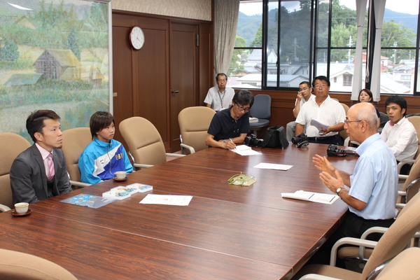 応接室に着席する井上 真帆さんに話をしている市長とその近くにすわる関係者の人達の写真 拡大画像 (JPEG: 86.6KB)