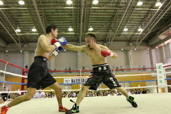 波多野慎也さんが相手に左ボディーパンチしている写真 拡大画像 (JPEG: 87.5KB)