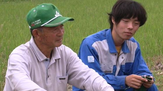 作業着を着た青年と、年配の男の人が座っている写真 拡大画像 (PNG: 291.2KB)