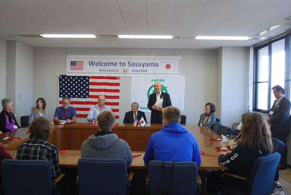 姉妹都市のアメリカワシントン州ワラワラ市から、短期留学生訪問団(委員長フランクリン・ディーンさんと学生10人、ロバート・キーツさんご夫妻)がお越しになりました。