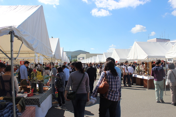 たくさんのテントがあり立ち止まって見る人々や歩く人々の写真 拡大画像 (JPEG: 151.6KB)