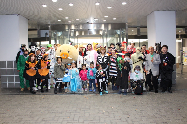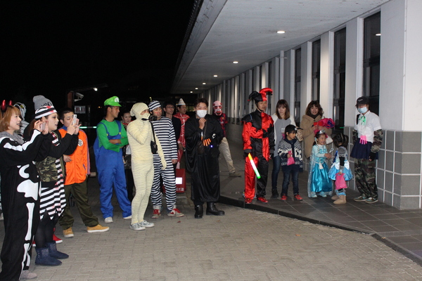10月31日(土曜日)午後7時に、思い思いの仮装をされたハロウィンの行列約40名が、市役所前を出発して商店街を歩かれ、店に立ち寄ったり、楽しく盛り上げました。