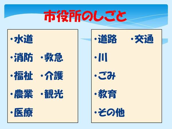 市役所のしごとのテキスト 拡大画像 (JPEG: 30.1KB)