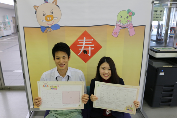 また、本庁のみのサービスとなりますが、記念写真を希望される方には、職員がパネルの前で撮影し、お渡しするサービスもあわせて行います。(宿日直や各支所で提出された場合で、記念撮影をご希望される方は本庁市民課までご来庁ください。)