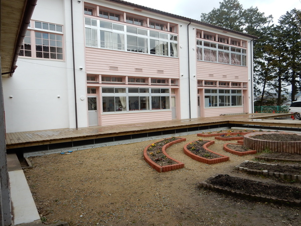 耐震改修工事完成した、校舎の花壇の写真 拡大画像 (JPEG: 174.1KB)