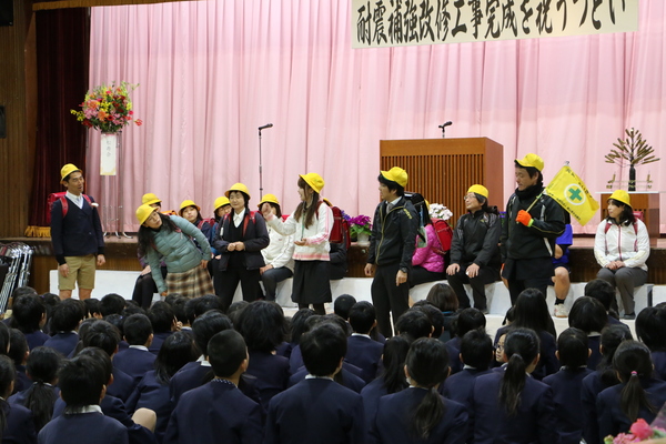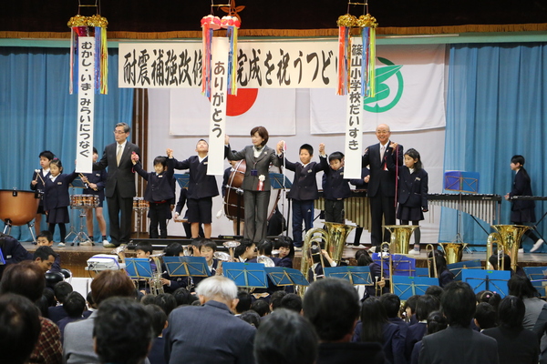約20年という長い間、新しい校舎を待ち望まれ、そして耐震診断後も混乱なく温かいご配慮を頂きました児童や保護者、地域の皆さん、本当にありがとうございました。
