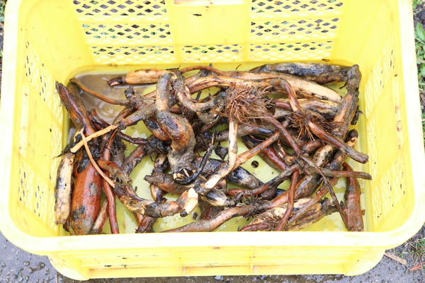 黄色いかごに入った、種レンコンの写真 拡大画像 (JPEG: 204.5KB)