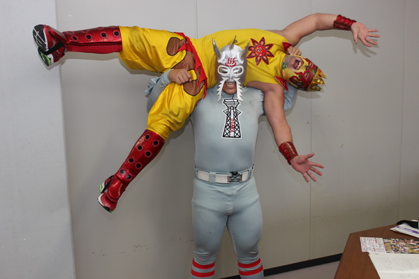 人気選手の「タコヤキ―ダー」と「怪獣ニューワールド」もご一緒に来て頂きました。