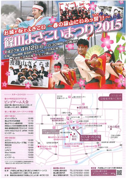「篠山よさこいまつり2015」のチラシ 拡大画像 (JPEG: 74.7KB)
