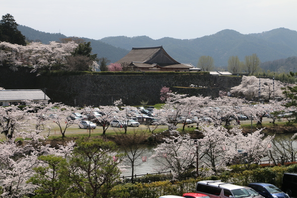 市長室から見える篠山城跡周辺に美しく咲き誇るソメイヨシノの桜の木の写真 拡大画像 (JPEG: 185.8KB)