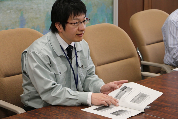 篠山市職員の山本一也君が資料を持って市長に報告している写真 拡大画像 (JPEG: 134.1KB)