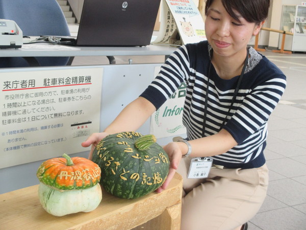 日本遺産カボチャ(市長日記H27.7.25) Tweet 更新日:2020年03月24日 市内上板井の西田 敏夫さんが、日本遺産の文字入りのカボチャをお持ちいただき、早速市民ロビーなどに飾っています。 どのようにすればこんなカボチャができるのでしょうか。 また一度ご覧ください! 日本遺産の文字が入った南瓜2個を職員の女性が並べている写真 拡大画像 (JPEG: 81.7KB)