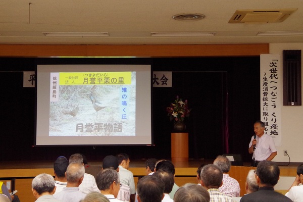 基調講演では、長野県飯島町の一般社団法人 月誉平栗の里(つきよだいら くりのさと)の下島さんからお話がありました。