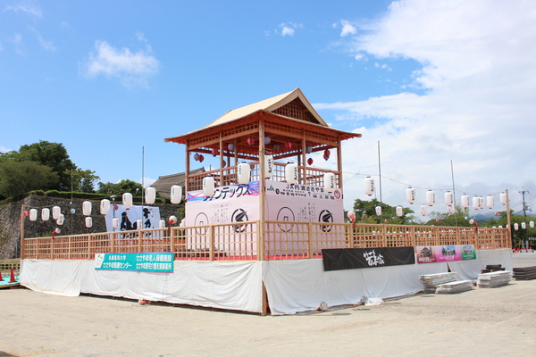 まちなかの装飾、会場の木製巨大ヤグラやちょうちんも準備されました。