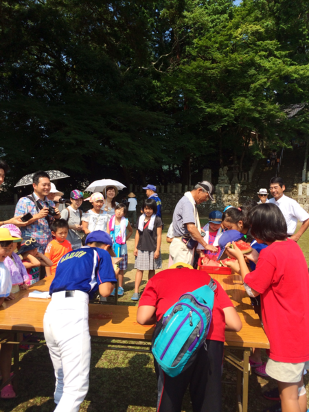 小学校の子ども達も全員参加して、早食い大会などに頑張ります。