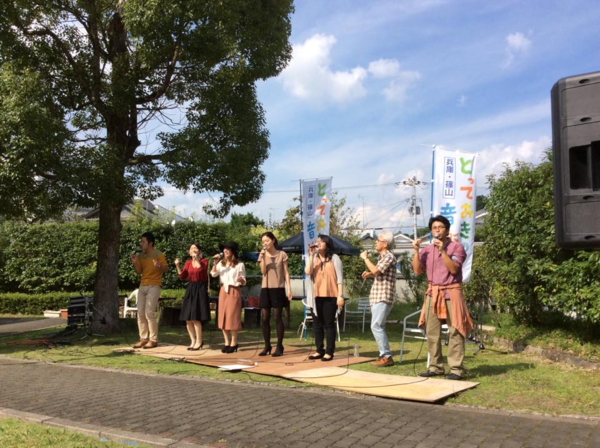 音楽祭は、メイン会場のたんば田園交響ホール西側駐車場を中心に、市役所玄関前、交響ホール玄関、大正ロマン館中庭、よし池公園、旧小島うば車店、キリスト教団篠山教会の7会場に、全国から集まった様々なジャンルのアーティスト60組が演奏を繰り広げました。