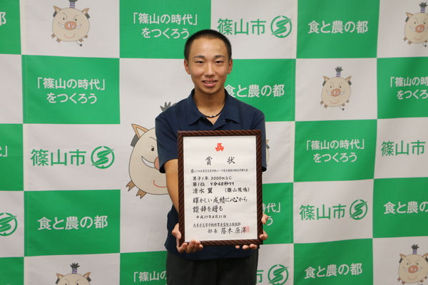 清水翼君 県大会で優勝(市長日記H27.9.9)