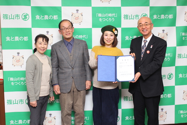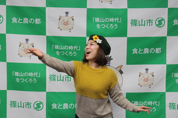 森田さんは「虫の音、カエルの声を聞いて大きくなりました。丹波篠山出身であることをみんなに自慢しています。おいしいものや魅力がいっぱいある。黒豆、ぼたん鍋、陶芸、温泉など、いいところを沢山アピールします。」と元気に抱負を述べました。