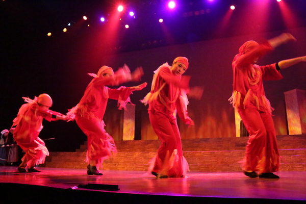 ステージ全体に広がり、両手を広げて踊っているたくさんの出演者の写真 拡大画像 (JPEG: 121.3KB)