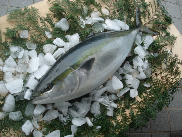 氷の上に置かれたブリの写真 拡大画像 (JPEG: 159.8KB)