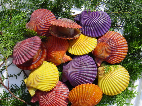 紫や、黄色、赤のヒオウギ貝の写真 拡大画像 (JPEG: 179.4KB)