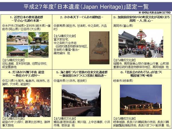 平成27年度「日本遺産」認定一覧1~6の画像 拡大画像 (JPEG: 63.5KB)