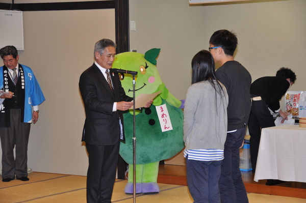 男女ペアの参加者がスーツを着た男性から表彰を受けている写真 拡大画像 (JPEG: 164.4KB)