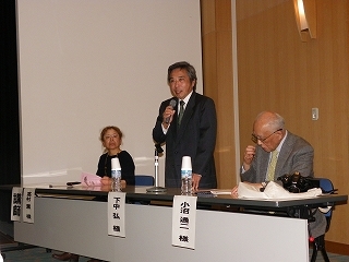 マイクを持って話をしている下中 弘さんの両隣に高村さんと小沼さんが着席している写真 拡大画像 (JPEG: 56.7KB)