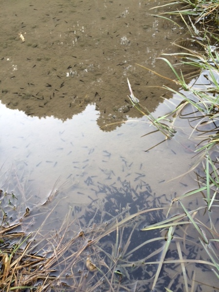 市長が所有する田んぼで元気に動いているオタマジャクシが集まっている写真 拡大画像 (JPEG: 126.8KB)