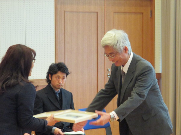 表彰式は、3月10日(木曜日)、兵庫陶芸美術館(今田町上立杭)で行われ、表彰楯(丹波焼陶板)が贈呈されました。