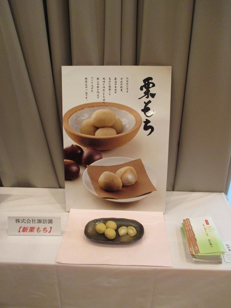 新栗もちのサンプル写真とパンフレットが紹介されている写真 拡大画像 (JPEG: 49.8KB)
