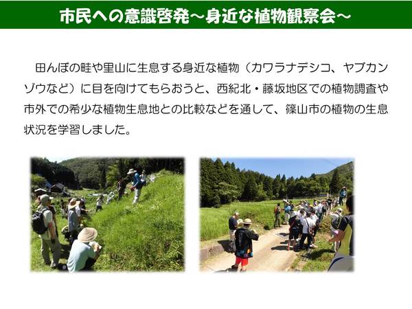 市民への意識啓発~身近な植物観察会~の説明 拡大画像 (JPEG: 44.8KB)