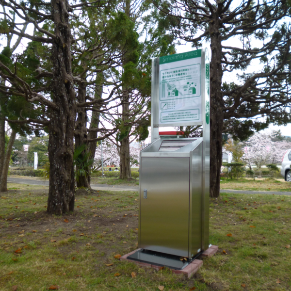 この灰皿はステンレス製の高価な灰皿で、三の丸駐車場には木目調の柄で景観に配慮した灰皿になっています。