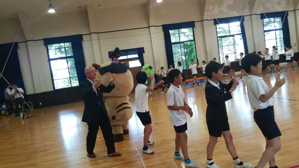 どの学校でも、最後には、デカンショ踊りの職員とまるいのとまめりんが登場し、みんなでにぎやかにデカンショを踊って締めくくりました。