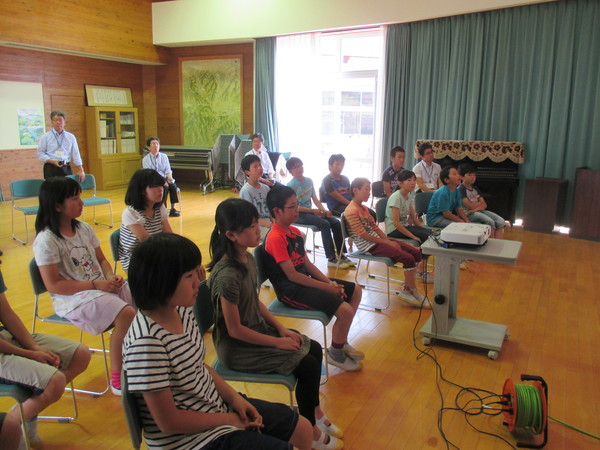 子供達が椅子に座りスクリーンをみている様子を横から写した写真 拡大画像 (JPEG: 86.0KB)