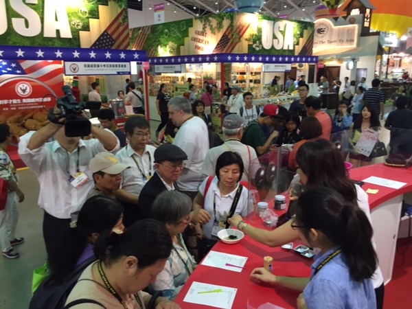 台北国際食品見本市にて、小田垣商店が参加していてお客さんが並んでいる写真 拡大画像 (JPEG: 128.2KB)