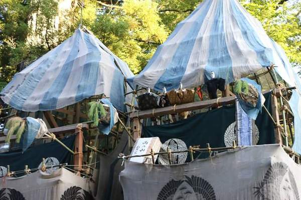 山車の上に青と白の布がかけられている写真 拡大画像 (JPEG: 46.8KB)