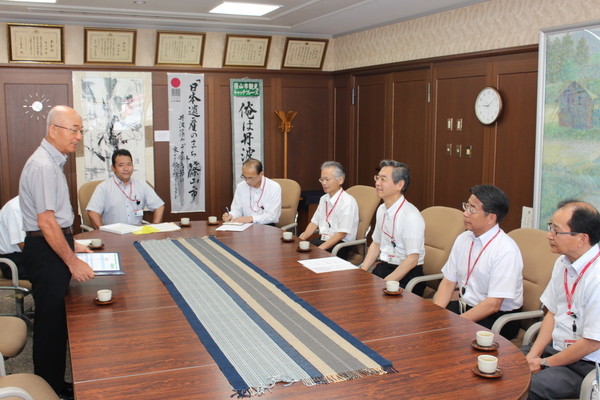 市長が各郵便局の方々とお話している写真 拡大画像 (JPEG: 173.2KB)