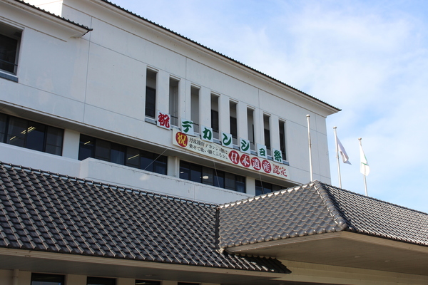 祝デカンショ祭の文字で飾られている建物の写真 拡大画像 (JPEG: 149.7KB)