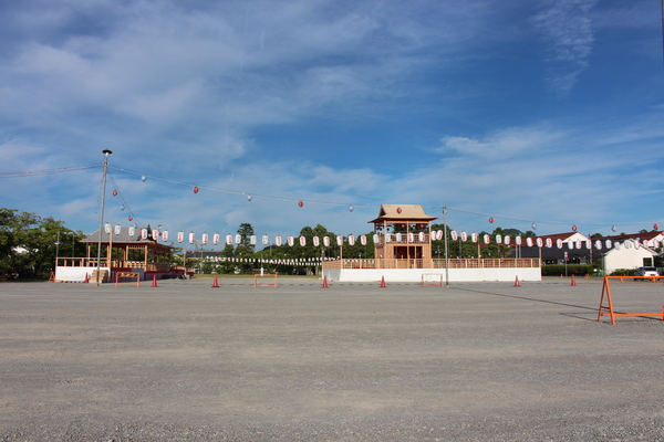 やぐらや、提灯が飾られた広場の写真 拡大画像 (JPEG: 131.0KB)