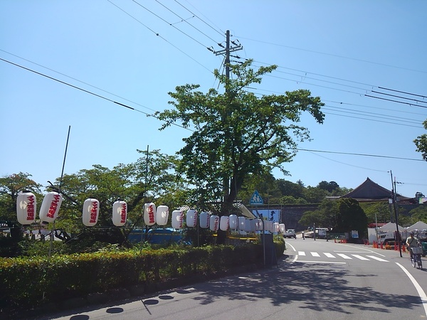 道路のわきに並ぶ提灯の写真 拡大画像 (JPEG: 116.5KB)