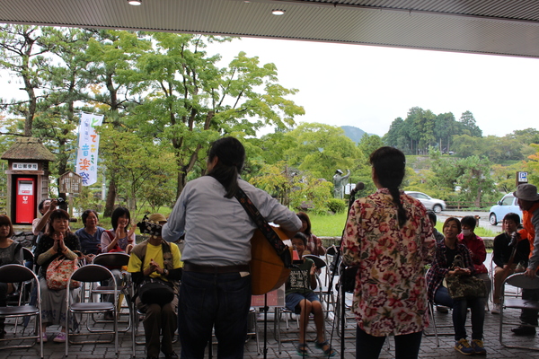 10名ほどの座っている人の前でギターを持った男女が演奏している写真 拡大画像 (JPEG: 205.3KB)