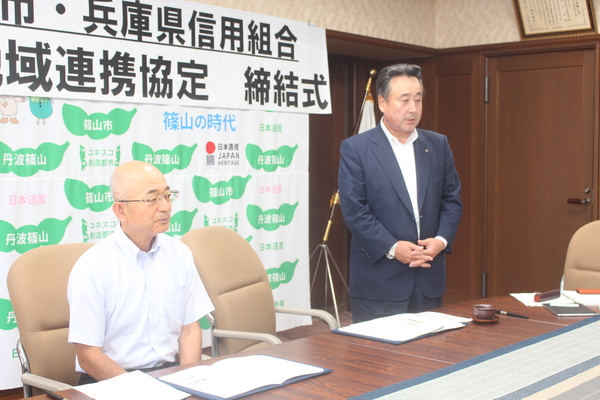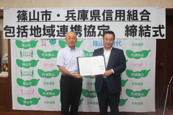 篠山市と兵庫県信用組合との間で、地域連携協定を結びました。