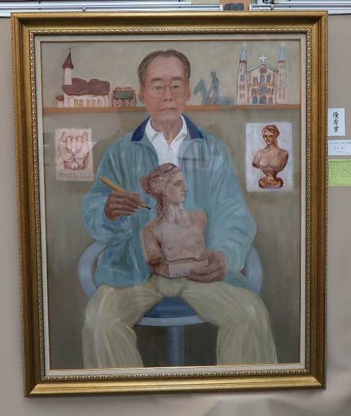 河合賞(最優秀賞)は、彫刻工芸部門の宇杉 昭信さんの「二重奏・風の音」が選ばれました。座ポーズの女性像で、片手を耳にあて風の音に耳をそばだてている仕草が何とも愛らしく、ブロンズ風の着色が明るく爽やかな印象を感じさせる作品です。