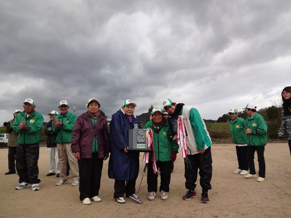 ゲートボール大会で女性の方が表彰され盾を受け取っている写真 拡大画像 (JPEG: 82.2KB)